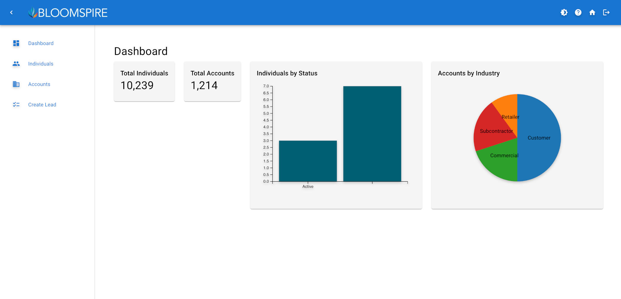 - Our Solution: Custom dashboards with D3-powered charts (e.g., bar graphs for status breakdowns) and comma-formatted totals (e.g., "10,239 individuals") provide at-a-glance analytics.